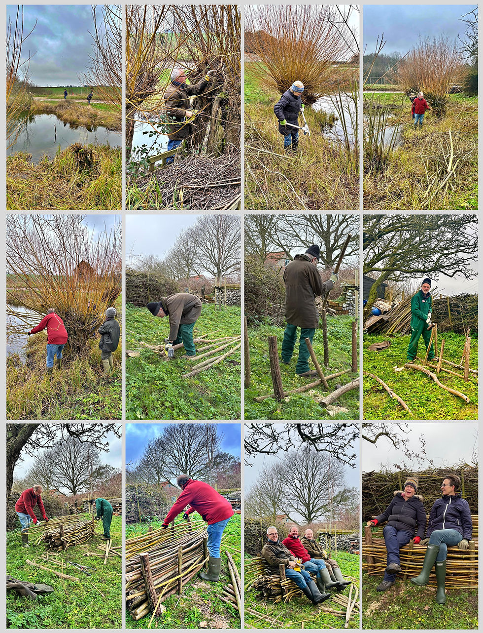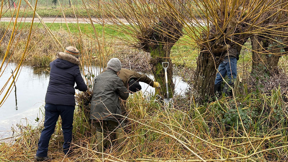 On the 9th February 2026 the S.W.A.M.P. team set about two tasks - pollarding the willow around Morston Pond and using the wood to manufacture a natural bench, for the comfort of ourselves and visitors alike.